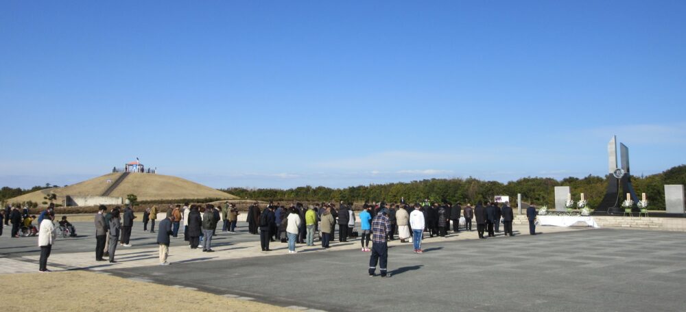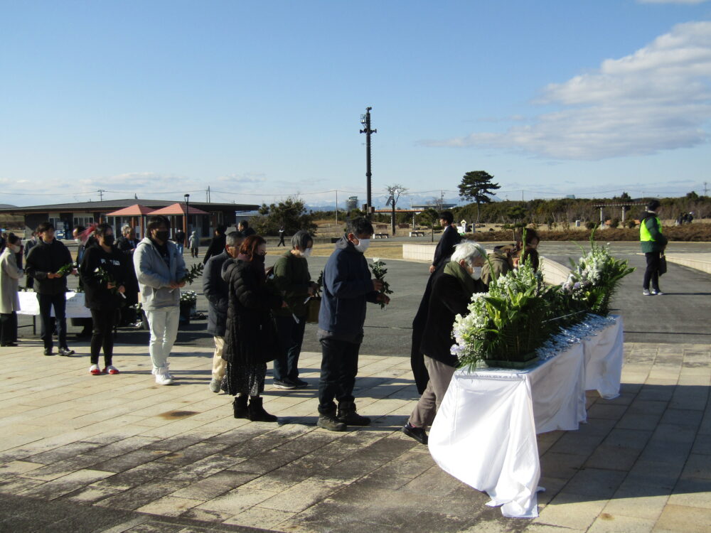 3月11日、午後10時から午後4時まで、東日本大震災で犠牲となられた方へ哀悼の意を表するため、千年希望の丘相野釜公園に献花台を設置しました。当日は自由献花方式とし、多くの皆様に静かに手を合わせていただきました。各々が震災への思いを胸に、祈りの時間を過ごされている姿が印象的でした。