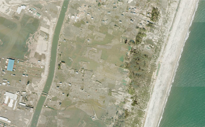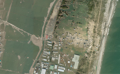 岩沼市の沿岸部には、「相野釜(あいのかま)」「藤曽根(ふじそね)」「二野倉(にのくら)」「長谷釜(はせがま)」「蒲崎(かばさき)」「新浜(しんばま)」の6つの地区があり、東日本大震災前は515世帯1784人が暮らしていました。東日本大震災の大津波により、人々は沿岸から内陸へ約3km離れた場所に防災集団移転し、「玉浦西」という新しいまちに移り住みました。
