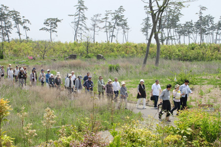 東日本大震災の記憶や教訓を後世に語り伝えていく“震災語り部”を募集しています。平成28年4月に千年希望の丘交流センターがオープンして以来、国内外から多くの方々が視察研修に訪れており、現地でのガイド依頼が増えております。現在、語り部としてご協力いただいている方々には、相野釜公園(メモリアルパーク)内にある慰霊碑・1号丘・2号丘等を実際に歩きながら、大震災発生時の様子や岩沼市の復興への取組みなどについて説明案内をしていただいています。
